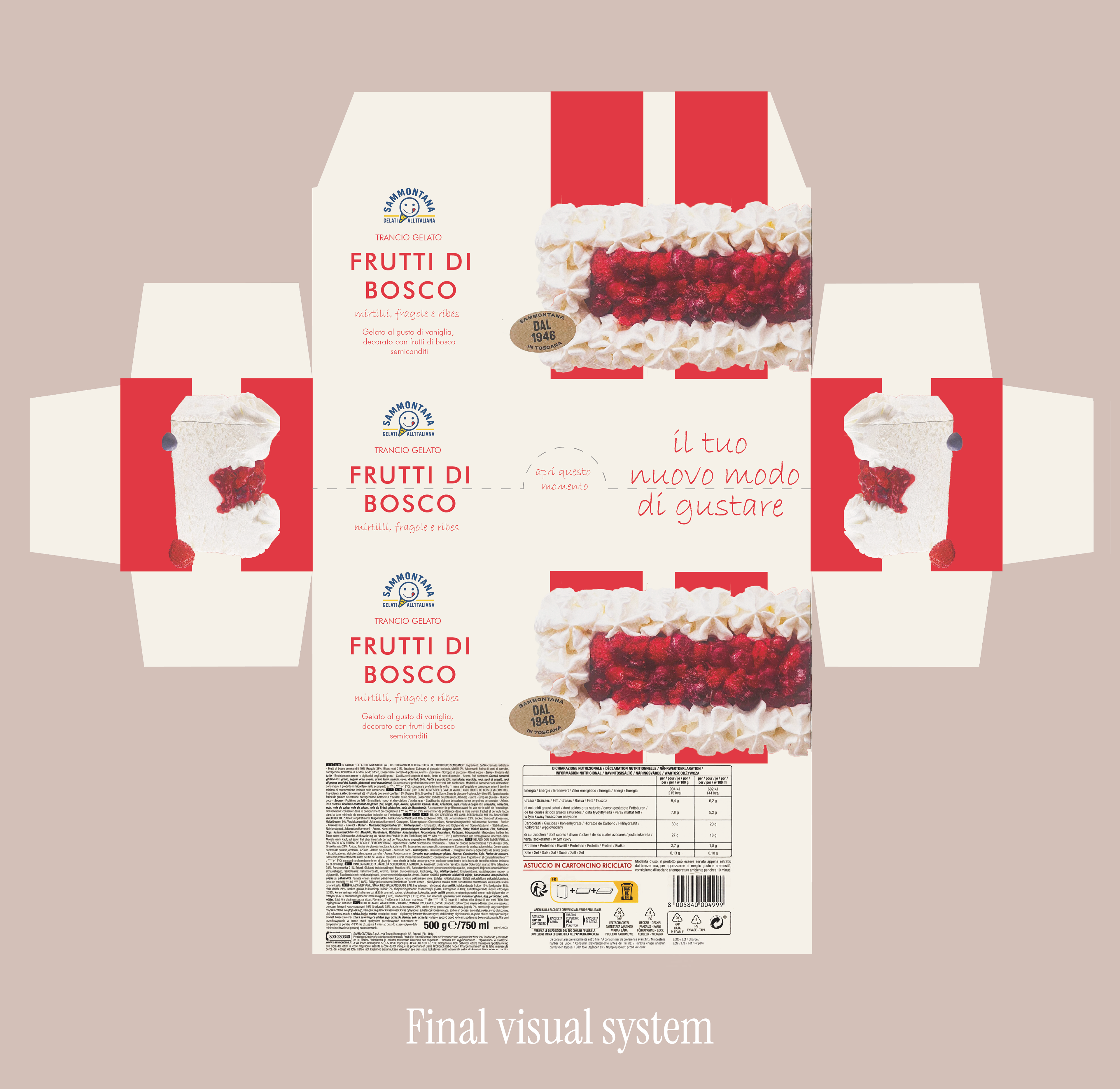 With a view to sustainable packaging innovation, it was designed the box for ice cream cakes produced at the Empoli plant. The analysis was carried out on rectangular cakes (slices).